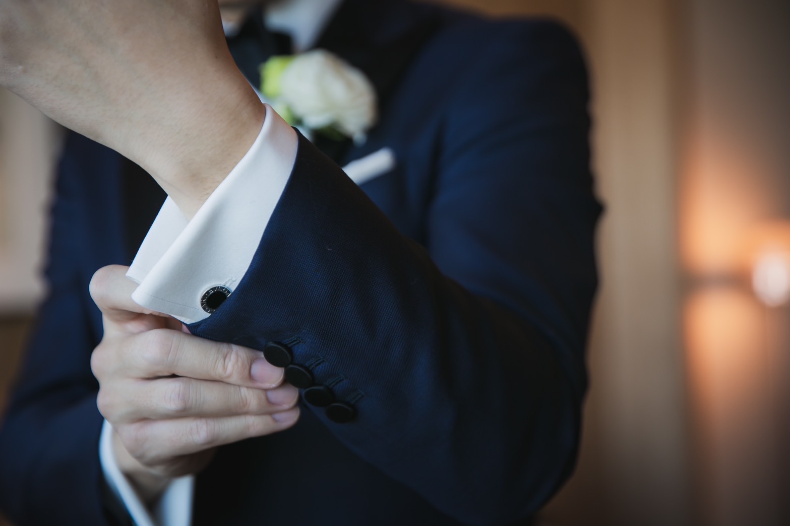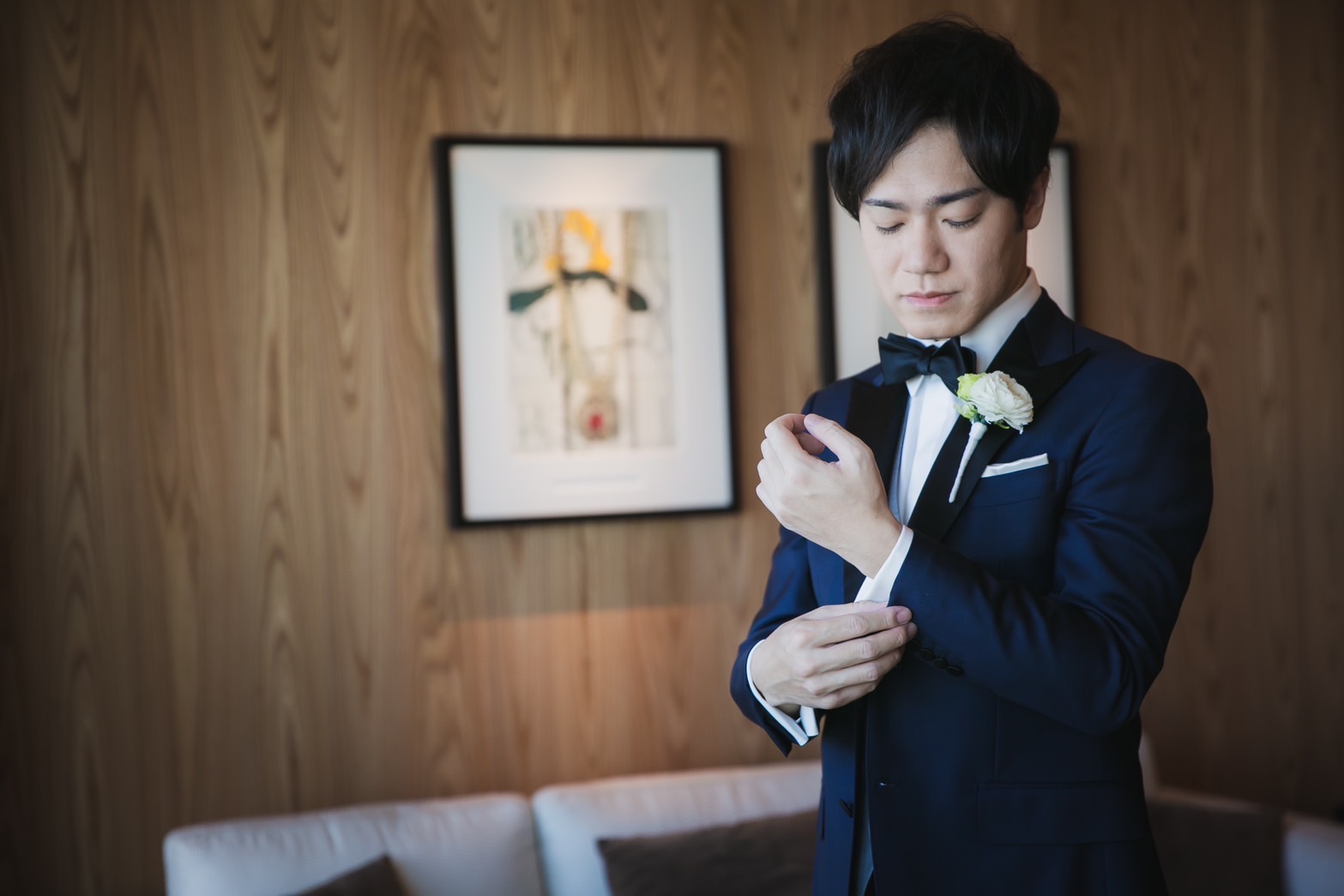 ブルガリホテルの洗練された空間にふさわしいタキシードは、