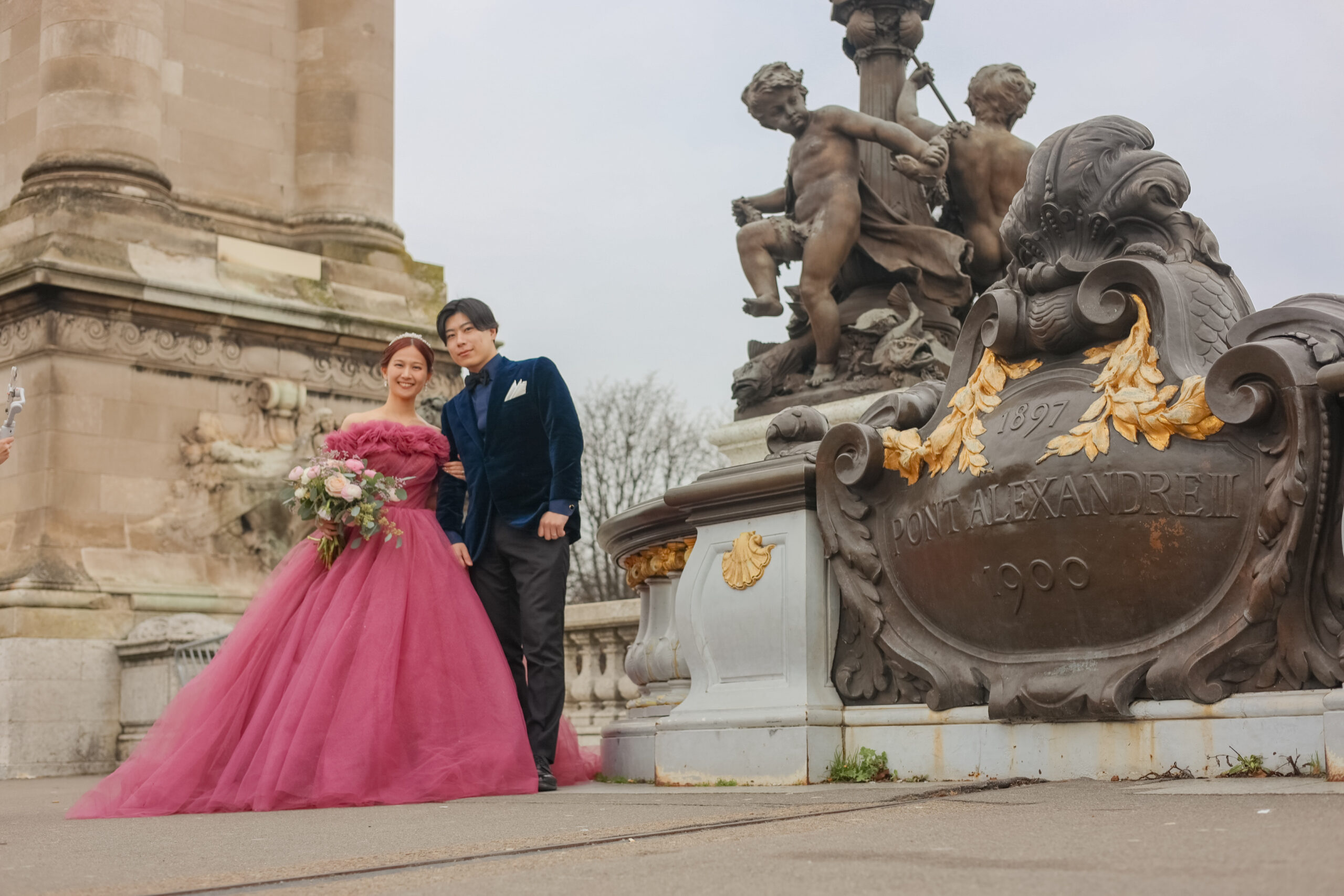 ベルベットならではの独特な高級感と、光の当たり方で表情を変える美しい色の深みが、パリの街並みに見事に調和していました。