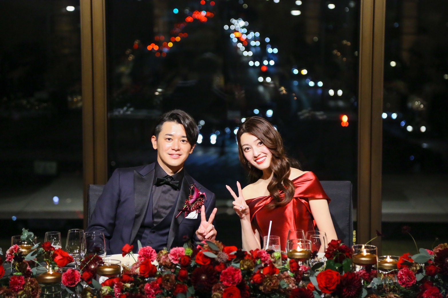 格式あるザ・ペニンシュラ東京の夜に、艶やかな赤が美しく映えます。
